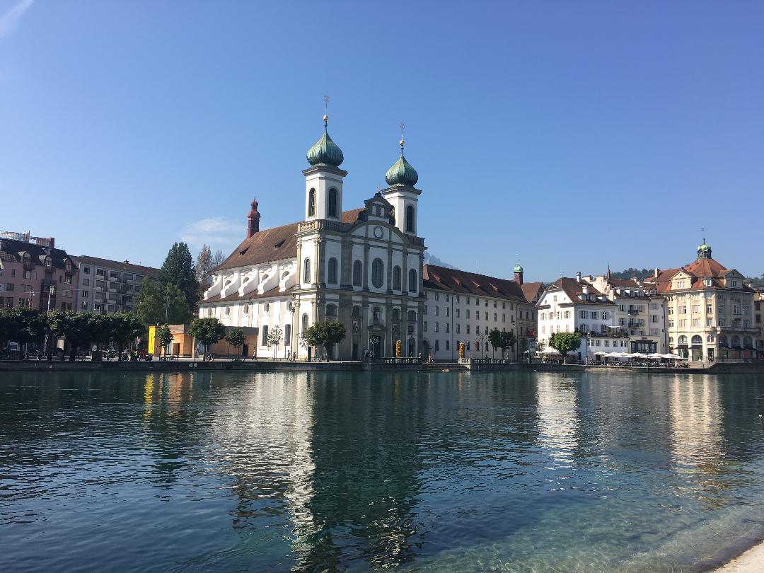 The picturesque old town of Lucerne is imbedded in a small valley surrounded by close-by mountains and lake Lucerne. Join us to visit the old town center of Lucerne. The tour starts at the railway station or at your hotel. We will walk across the famous chapel bridge, which is the longest wooden covered bridge of Switzerland. Then we visit some old town squares beautifully decorated with fresco paintings of the past. We will step inside Jesuit church, a baroque style national monument and admire the stucco work on its walls and ceiling. You will learn about the history of the town and its present situation. You will find out about the city's most attractive shopping area which lies in a traffic free zone. And last but not least the tour takes you to the lion monument. This huge war memorial is chiseled in a natural rock surrounded by a park. We will also answer your questions regarding your stay in Lucerne, provide additional suggestions for tours and give information about museums and art galleries.